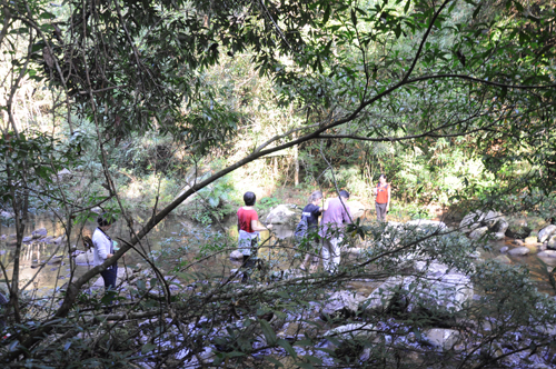 Đoàn khảo sát du lịch trên đường vào rừng Táu, huyện Sơn Động. Ảnh Văn Dương