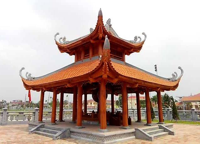 Lầu Trống tại Đền Xương GiangHệ thống cây xanh được trú trọng, ngoài tác dụng tạo cảnh quan, bóng mát, giúp công trình hòa quện với thiên nhiên còn làm tĩnh tại tâm hồn người hành hương, truyền tải ý nghĩa về mặt tâm linh.