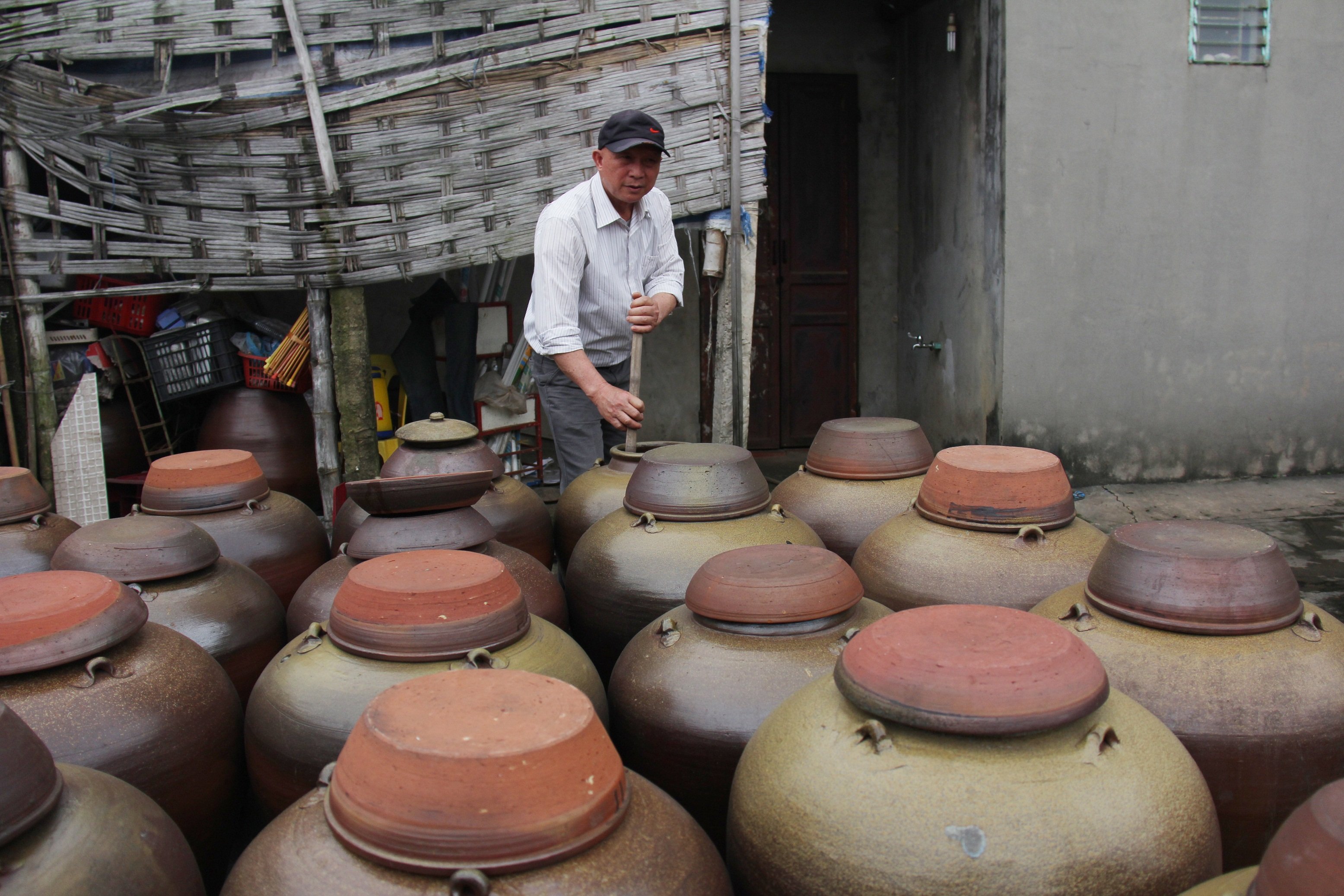 Phải để những chum nước đỗ tương đó vào chỗ râm mát, nhiệt độ vừa phải. Đến khi nó bốc mùi hơi khó chịu là được. Các cụ có câu “cha thiu, mẹ thối”, nghĩa là xôi mốc phải hơi thiu, nước đỗ phải hơi thối thì làm tương mới ngon. Cứ sáng sớm, dùng đũa cả khuấy đều lên một lần rồi đậy lại. Làm liên tục trong 2-3 ngày. Tới ngày thứ 4, thứ 5 ta thấy có hiện tượng sủi bọt, lúc đó, ta đổ chum đựng mốc và hũ bột đỗ đã ngâm vào một chum thứ ba. Chế thêm nước vào, đặc hay loãng là tùy ta. Đem chum ra phơi hàng ngày từ 9 giờ sáng tới 5 giờ chiều. Mỗi ngày khuấy đều một lần rồi đậy lại. Chỉ mươi hôm sau là ta có tương để ăn. Để càng lâu tương càng ngon.