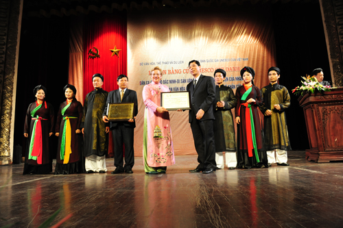 Ông Bùi Văn Hải- Bí thư tỉnh ủy Bắc Giang nhận bằng công nhận dân ca quan họ và ca trù là di sản văn hóa phi vật thể của nhận loại