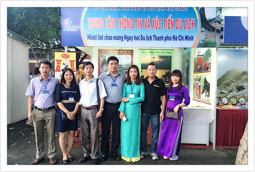 Đ/c Nguyễn Phúc Thuơng - Phó GĐ Sở thăm giang hàng của TTTTXTDL nhân Ngày hội du lịch tại tp Hồ Chí Minh năm 2015Hình thức quảng bá tiếp theo đó là tuyên truyền qua hệ thống ấn phẩm, vật phẩm luôn được lãnh đạo Trung tâm quan tâm, chú trọng. Năm 2015, tiếp tục xây dựng kế hoạch mời gọi một số đài truyền hình Trung ương, địa phương hợp tác, phối hợp để làm băng, đĩa hình video, clip, phim mới để quảng bá các danh thắng, lễ hội, khu, điểm du lịch của Bắc Giang, đồng thời chỉnh sửa, bổ sung, thay đổi nội dung hình ảnh tờ rơi, tờ gấp cho phù hợp với mẫu Logo mới của du lịch Bắc Giang. Bên cạnh đó, đơn vị triển khai thành lập tổ công tác đi thực tế đến các lễ hội trong tỉnh để đưa tin, bài phản ánh không khí tưng bừng náo nhiệt của các lễ hội đầu xuân, kết hợp với việc đi khảo sát, khai thác các điểm du lịch mới, để xây dựng các tour, tuyến phát triển du lịch, kết hợp với việc tiến hành khảo sát địa điểm để đặt các biển chỉ dẫn, hướng dẫn tới các điểm du lịch.