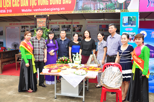 Lãnh đạo Sở VHTTDL Bắc Giang thăm gian hàng của TTXTDL nhân ngày hội VHTTDL các dân tộc vùng Đông Bắc tại Bắc KạnTrong công tác tham gia quảng bá giới thiệu tiềm năng du lịch Bắc Giang trực tiếp tại các hội chợ, hội thảo, hội nghị luôn được lãnh đạo Trung tâm xác định là nhiệm vụ hết sức cần thiết. Nhiều năm qua, hình ảnh con người, cảnh đẹp thiên nhiên, những sản vật đặc sắc của Bắc Giang đã được người dân trong nước và quốc tế biết đến trong các nội dung xúc tiến quảng bá trong gian hàng qua các ấn phẩm, vật phẩm và các sản vật đặc trưng như: Mỳ Chũ, rượu Làng Vân, bánh đa Kế, mật ong hoa vải, vải thiều Lục ngạn… các sản phẩm của Bắc Giang trưng bày, giới thiệu tại hội chợ luôn là tâm điểm thu hút đông đảo người dân địa phuơng và du khách tới thăm quan và thưởng thức. Song song với việc quảng bá, Trung tâm xây dựng kế hoạch tổ chức các chương trình khảo sát, xây dựng các tour, tuyến kết nối với các tỉnh Hà Nội, Lạng Sơn, Quảng Ninh, Hải Phòng, Thái Nguyên, Hải Dương để xây dựng các tour, tuyến kết nối, hợp tác cùng phát triển. Thường xuyên phối hợp với các doanh nghiệp kinh doanh du lịch trong tỉnh, các cơ sở sản xuất, chế biến các mặt hàng thủ công là sản phẩm được sản xuất tại các làng nghề thủ công truyền thống để quảng bá, giới thiệu với du khách gần, xa, các nhầ đầu tư trong và ngoài nước.