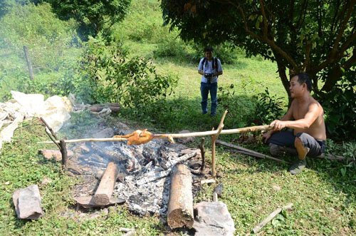 Bữa cơm trưa chung cùng với gia đình anh Thống trên đỉnh Mã Yên thật ấm cúng, cả chủ lẫn khách đều cởi mở, thân thiện. Đương nhiên, không thể thiếu đặc sản gà nướng, rau rừng và một chút rượu sim đậm đà đến mềm môi và ngây ngất. Đầu giờ chiều, không khí trên núi loãng và lạnh hơn, mọi người chuẩn bị ra về trước khi bóng tối ùa đến. Cảm nhận cái lạnh mỗi lúc một lan tỏa sâu hơn, bếp nhà ai dưới chân đèo nghi ngút từng cột khói. Tiếng chó sủa, lợn kêu vang vọng giữa không gian u tịch và đã rất lâu rồi tôi mới lại cảm nhận được cái “mùi” của khí núi, hương rừng mà trước đây đã thoáng gặp đâu đó mỗi khi đến miền núi…