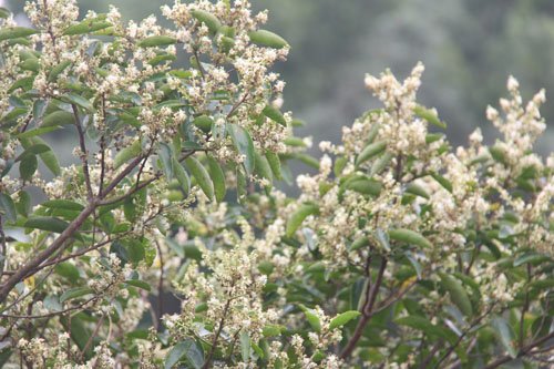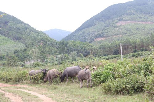 Những chiếc xe máy “chiến” ì ạch nuốt từng kilômet đường đất đá lởm chởm, mùi xăng bốc lên khét lẹt. Đoạn đèo dưới chân suối Vực Rêu không dài lắm nhưng phải mất chừng 30 phút đoàn chúng tôi mới lên đỉnh và buông ra những tiếng thở phào nhẹ nhõm. Cảm giác chinh phục được một quãng đường gian nan thật là sảng khoái. Chúng tôi dừng lại trên đỉnh núi ngắm cảnh, chụp ảnh một cách thật thư thái. Phóng tầm mắt về phía xa là những bản làng, đồng ruộng trù phú còn vương lại hơi sương mỏng manh, đâu đó vang lên tiếng dê, tiếng mõ gỗ lộc cộc của đàn trâu bên sườn núi, hẳn là một khung cảnh thực sự bình dị, đơn sơ đến tột cùng. Tiếng thông reo vi vu trong gió, những bông lau, hoa dại đang thời nở rộ đung đưa trước gió với nhiều gam màu rực rỡ đã làm tan biến mọi mệt mỏi, lo lắng trong chúng tôi. Đã qua nửa chặng đường lên dốc khó khăn nhất, chúng thôi thong dong từ triền núi này sang vạt núi khác, thỉnh thoảng bắt gặp một vài lán nhỏ đơn sơ của người dân lên đó lấy nhựa thông.