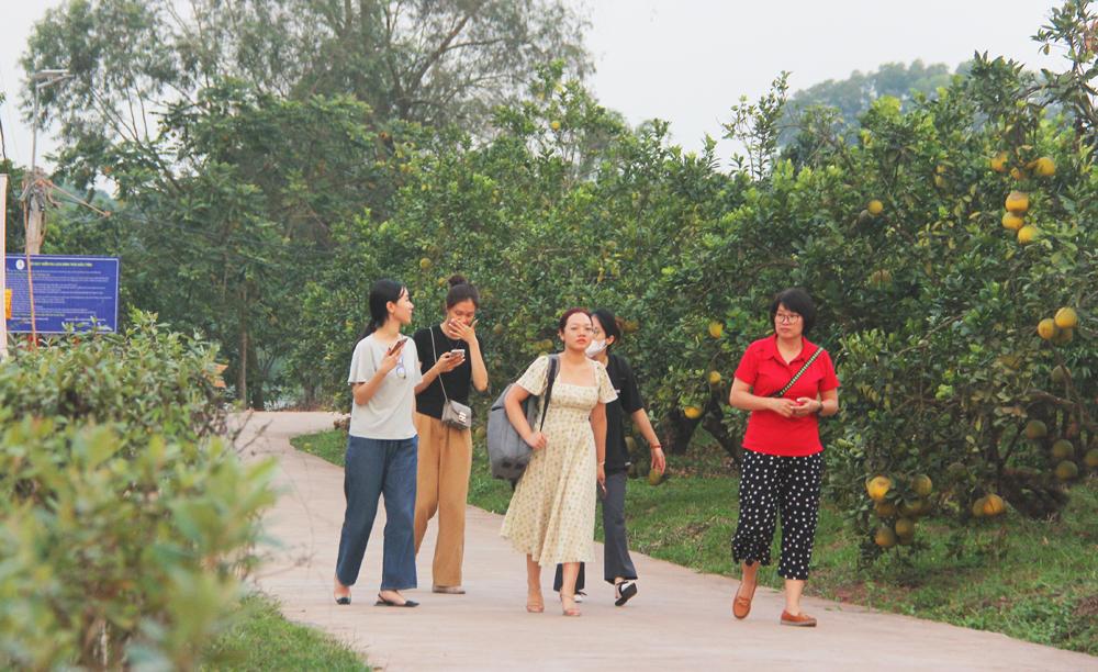 Trong tháng này, huyện Lục Ngạn sẽ tổ chức chương trình du lịch mùa thu - đông với nhiều hoạt động hấp dẫn. Ảnh: Du khách tham quan vườn bưởi tại xã Thanh Hải. |