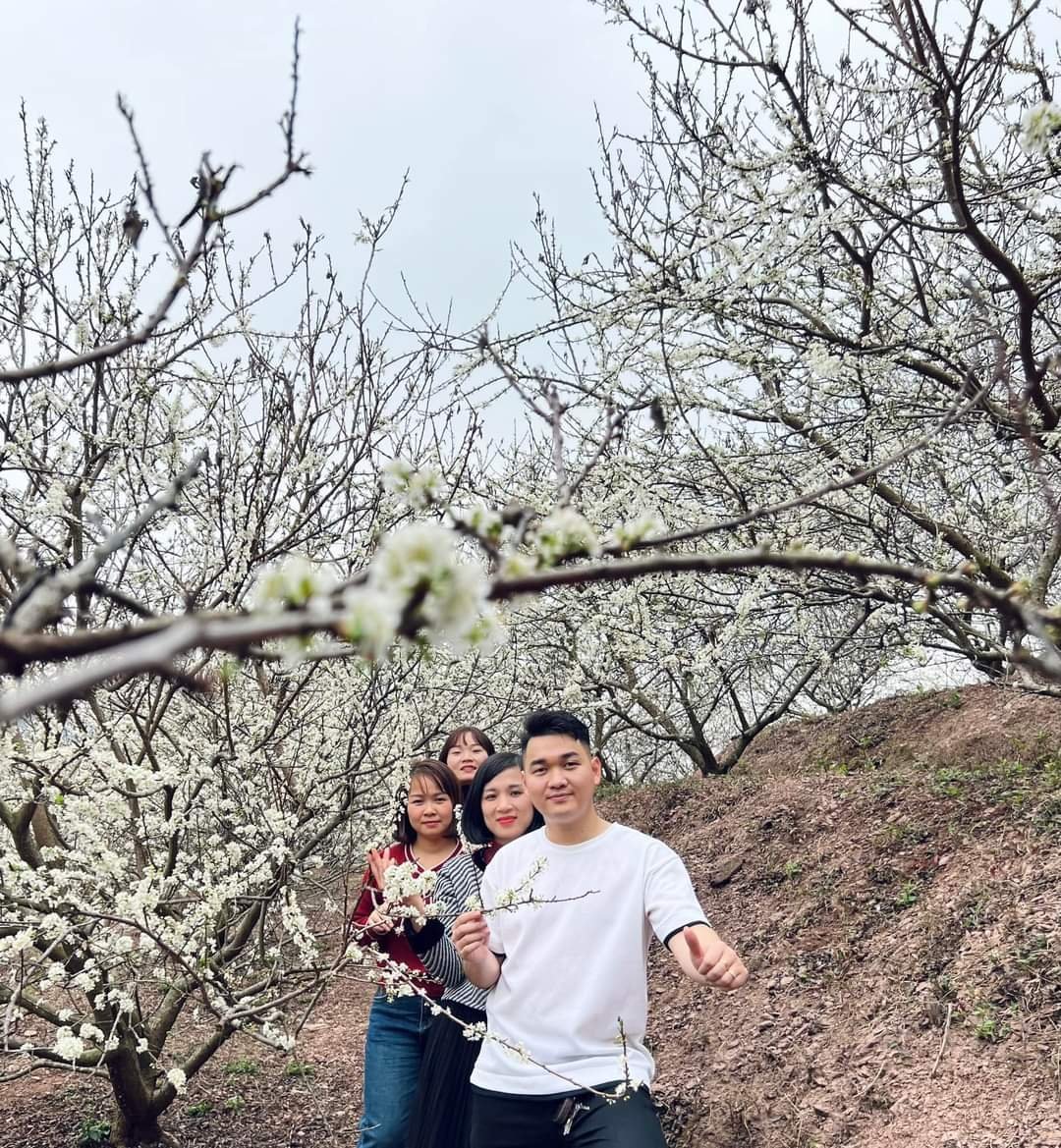 Chị Giáp Thị Huệ cho biết: qua mạng xã hội Facebock chị biết ở vùng Lục Ngạn mùa này hoa mận đang nở rộ nên cuối tuần chị đã cùng nhóm bạn lái xe từ thành phố Bắc Giang đến Lục Ngạn ngắm hoa. Từ thành phố Bắc Giang nhóm của chị đã ngược theo đường cao tốc Bắc Giang- Lạng Sơn khoảng hơn 50km rồi rẽ vào quốc lộ 279 xuôi về Phong Vân. Điểm dừng chân của nhóm là vườn mận gần 700 gốc mận của gia đình anh Nông Văn Nam thôn Suối Chạc. Chị cùng những người bạn đã mê mẩn ngắm hoa, chụp ảnh hết cả buổi sáng. Đến trưa nhóm của chị ăn trưa tại phố chợ Tân Sơn rồi ghé thăm bản Bắc Hoa xã Tân Sơn nằm ven quốc lộ 279.