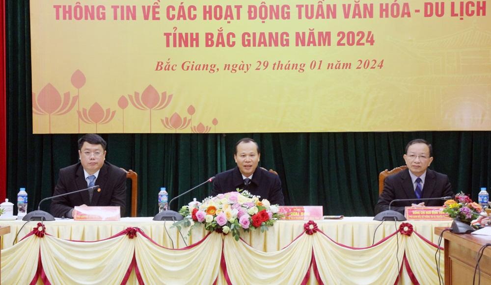 Đồng chí mong muốn các cơ quan báo chí đẩy mạnh truyền thông về Tuần Văn hóa - Du lịch của tỉnh, truyền đi thông điệp và hình ảnh Bắc Giang là điểm đến an toàn, văn minh, thân thiện, mến khách; du lịch Bắc Giang là du lịch văn hóa tâm linh gắn với con đường Hoằng dương Phật pháp của Phật Hoàng Trần Nhân Tông. Cùng đó là chủ trương phát triển du lịch cộng đồng, du lịch miệt vườn gắn với các vụ thu hoạch trái cây đặc sản của Bắc Giang; lan tỏa những giá trị văn hóa tốt đẹp góp phần thúc đẩy phát triển du lịch và KT-XH của tỉnh.